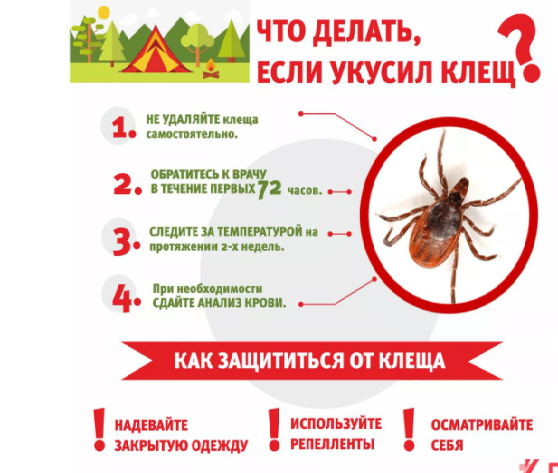 Даже если укус клеща был кратковременным, риск заражения клещевыми инфекциями не исключается. Обратитесь за консультацией к врачу!