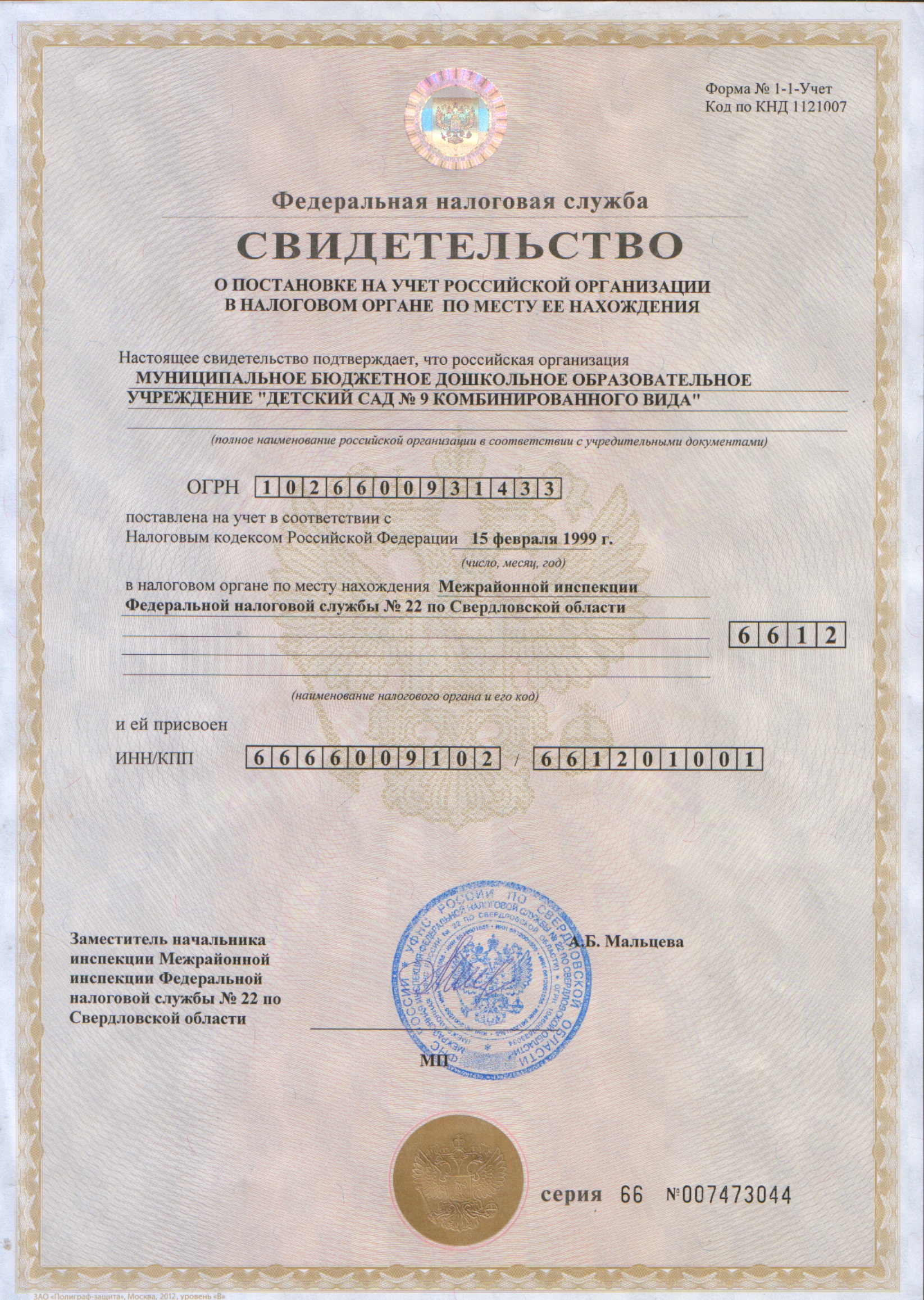 4.Свидетельство о постановке на учет в налоговом органе